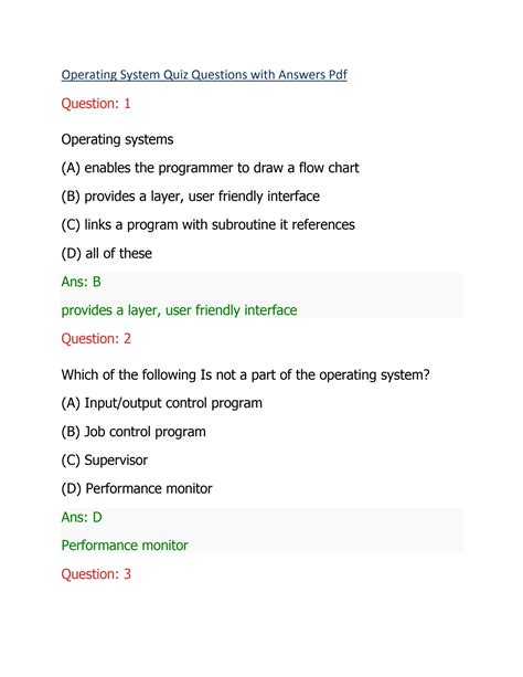 Read Online Operating System Quiz Questions With Answers Reader online is a convenient and frugal way to read Operating System Quiz Questions With Answers you love right from the comfort of your own home. Yes, there sites where you can get Reader "for free" but the ones listed below are clean from viruses and completely legal to use.