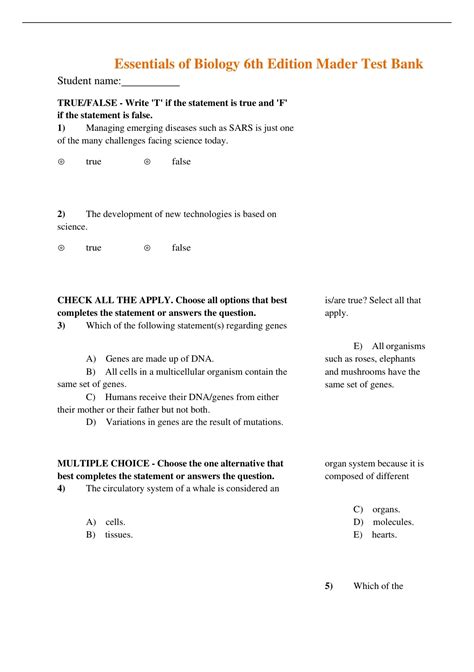 Download Essentials Of Biology Mader Test Bank Answers Kindle Editon
