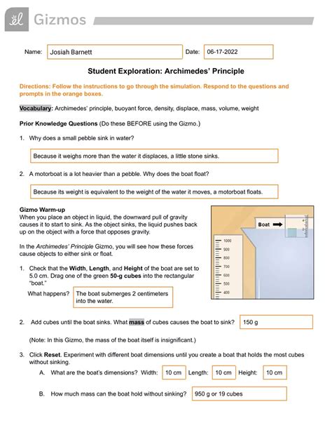 Download Student Exploration Archimedes Principle Answer Key Kindle Editon